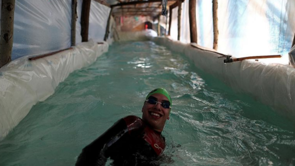 His dad spent days creating this sufficient pool for his son to practice in, using plastic sheets and logs that he drilled into the ground, filling it with an impressive 400 liters of water.